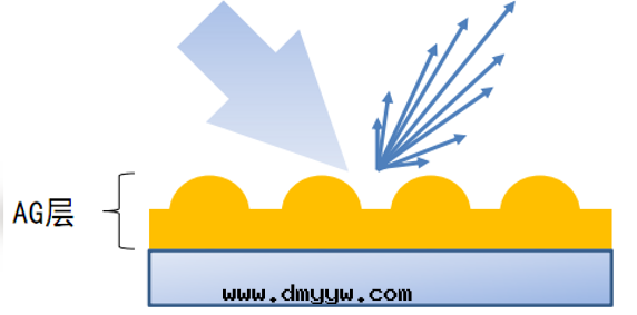 1 AG防眩光(guāng):通(tòng)过(guò)在(zài)载(zài)體(tǐ)表(biǎo)面(miàn)做表(biǎo)面(miàn)處(chù)理(表(biǎo)面(miàn)粗(cū)糙化(huà))簡稱:漫反(fǎn)射原理