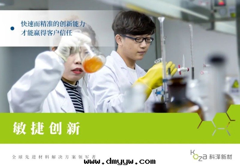 领軍者(zhě):科澤新(xīn)材积极(jí)投身(shēn)于(yú)大(dà)變(biàn)迁时(shí)代(dài),把(bǎ)握市(shì)场(chǎng)机会(huì),通(tòng)过(guò)对(duì)産品品質(zhì)的(de)高(gāo)要(yào)求,不(bù)斷滿足客戶需求。基于(yú)研發(fà)創新(xīn)、技術(shù)突破,主(zhǔ)導先(xiān)進(jìn)材料的(de)轉(zhuǎn)型升(shēng)級,成(chéng)为(wèi)全(quán)球先(xiān)進(jìn)材料解(jiě)決方(fāng)案(àn)领軍者(zhě)
