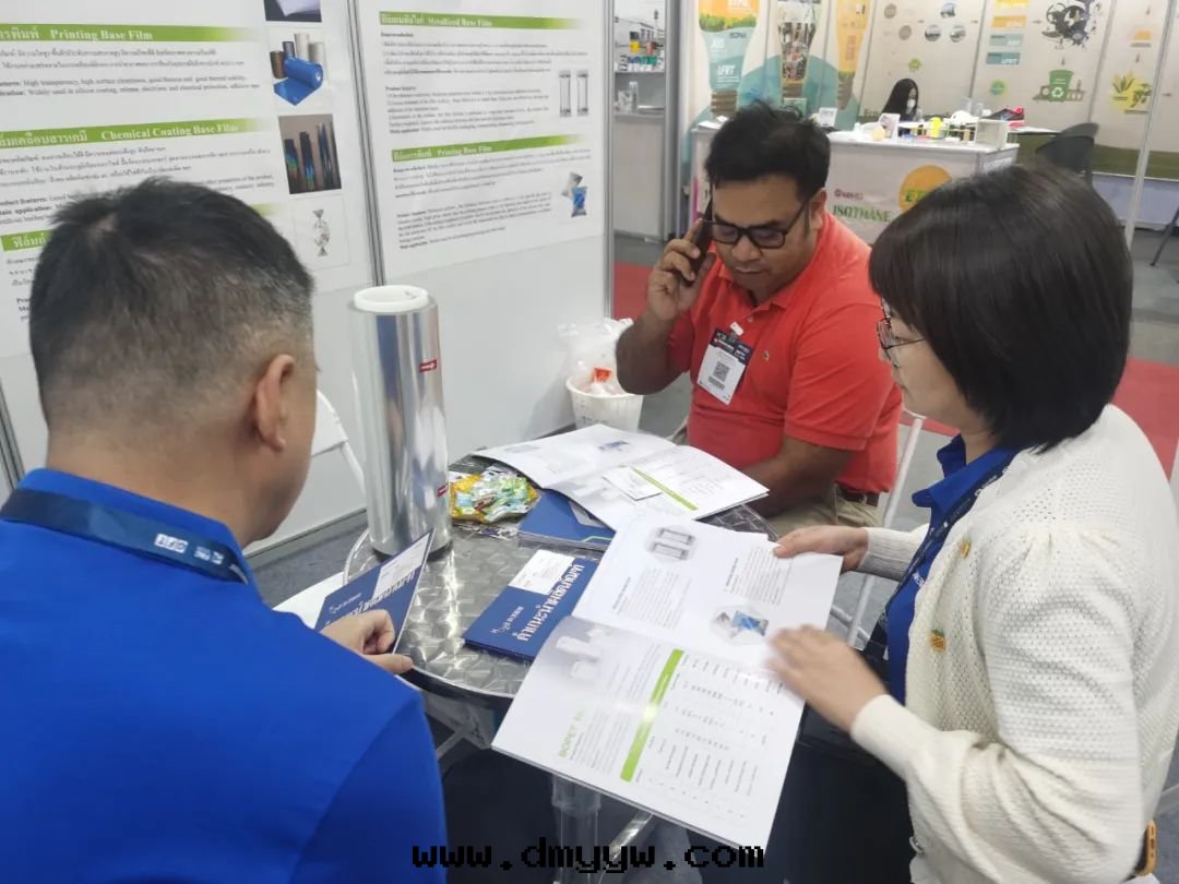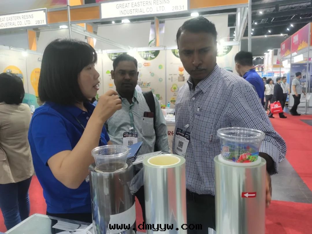 展(zhǎn)会(huì)期間(jiān),大(dà)量(liàng)来(lái)自(zì)泰國(guó)、越南(nán)、緬甸、菲律賓等國(guó)家新(xīn)老(lǎo)客戶參觀了(le)公(gōng)司展(zhǎn)台(tái)。公(gōng)司展(zhǎn)出的(de)展(zhǎn)品和(hé)工藝技術(shù)得到(dào)了(le)參觀者(zhě)和(hé)客戶的(de)高(gāo)度(dù)关注,其(qí)中(zhōng)泰國(guó)最(zuì)大(dà)的(de)商業集团(tuán)Chia Tai Group旗(qí)下(xià)包(bāo)裝(zhuāng)公(gōng)司对(duì)RPET的(de)薄膜提(tí)出需求,並(bìng)提(tí)出後(hòu)續到(dào)廠(chǎng)考察的(de)需求。为(wèi)期四(sì)天(tiān)的(de)展(zhǎn)出,来(lái)訪的(de)客商们(men)对(duì)我(wǒ)司的(de)膜体量(liàng)、産品工藝和(hé)交能(néng)力都給(gěi)予了(le)充分(fēn)的(de)認可(kě),特(tè)别是(shì)APET片(piàn)材獲得專業采購商的(de)青(qīng)睐,其(qí)中(zhōng)不(bù)少(shǎo)客戶提(tí)出試樣(yàng)需求,不(bù)乏海(hǎi)外(wài)代(dài)理(lǐ)商及(jí)客戶前(qián)来(lái)咨詢,並(bìng)與(yǔ)部分(fēn)客戶达(dá)成(chéng)了(le)初步合作(zuò)意(yì)向(xiàng)。